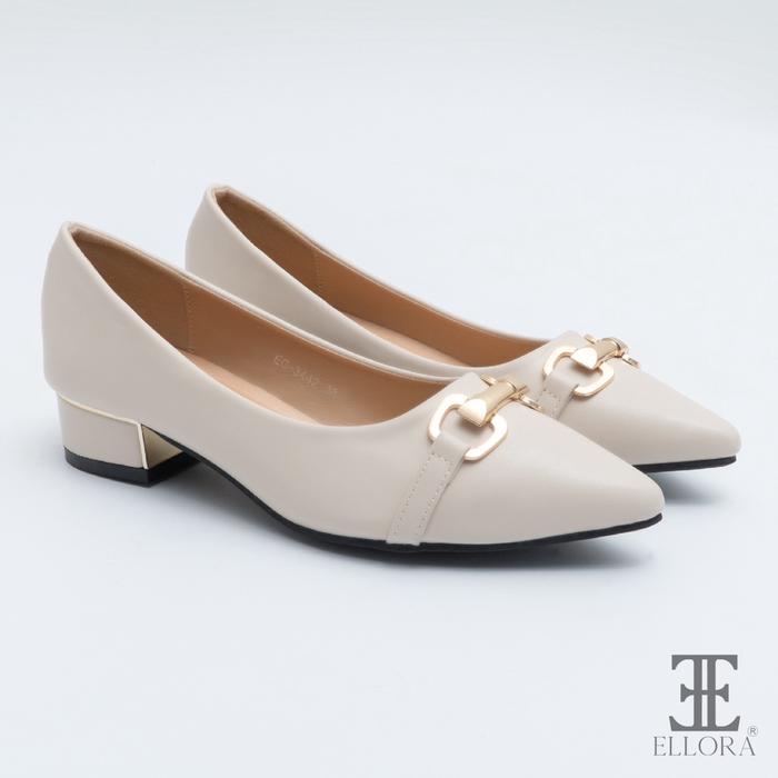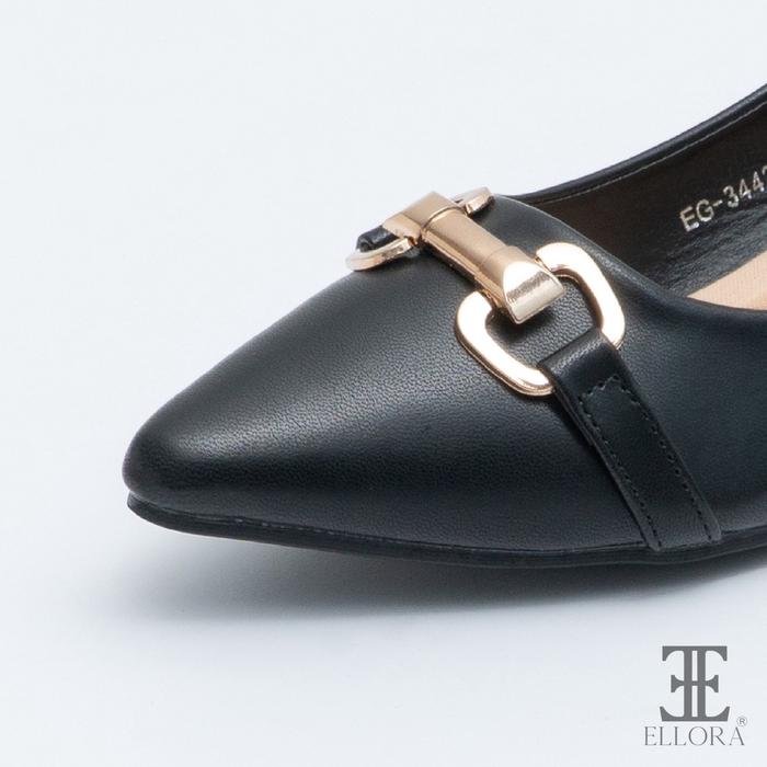 Sepatu Kulit Wanita ELLORA EG-3442 Sepatu Kerja Wanita Hak Chunky Import