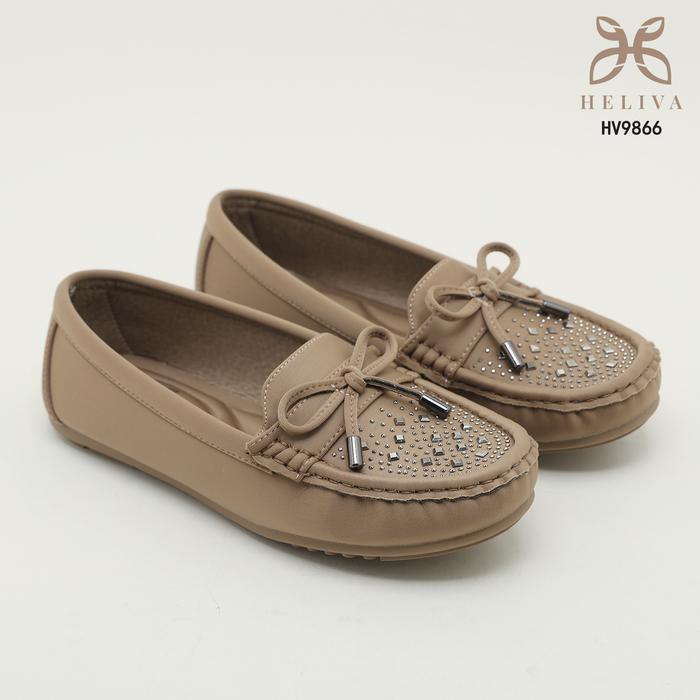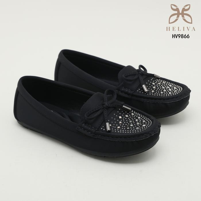 Sepatu Kulit Wanita Heliva Melody Loafers Wanita Bahan Kulit Halus Studded Timbul Pita Kecil Empuk