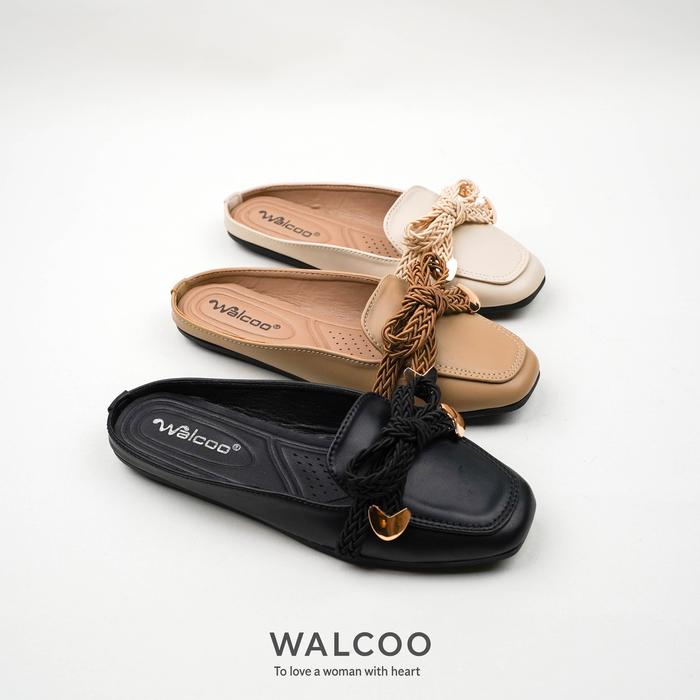 Sepatu Kulit Wanita Walcoo Miralyn - Flat Mules Elegan, Nyaman Buat Kerja & Hangout Semi Formal
