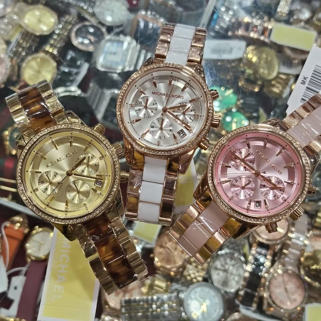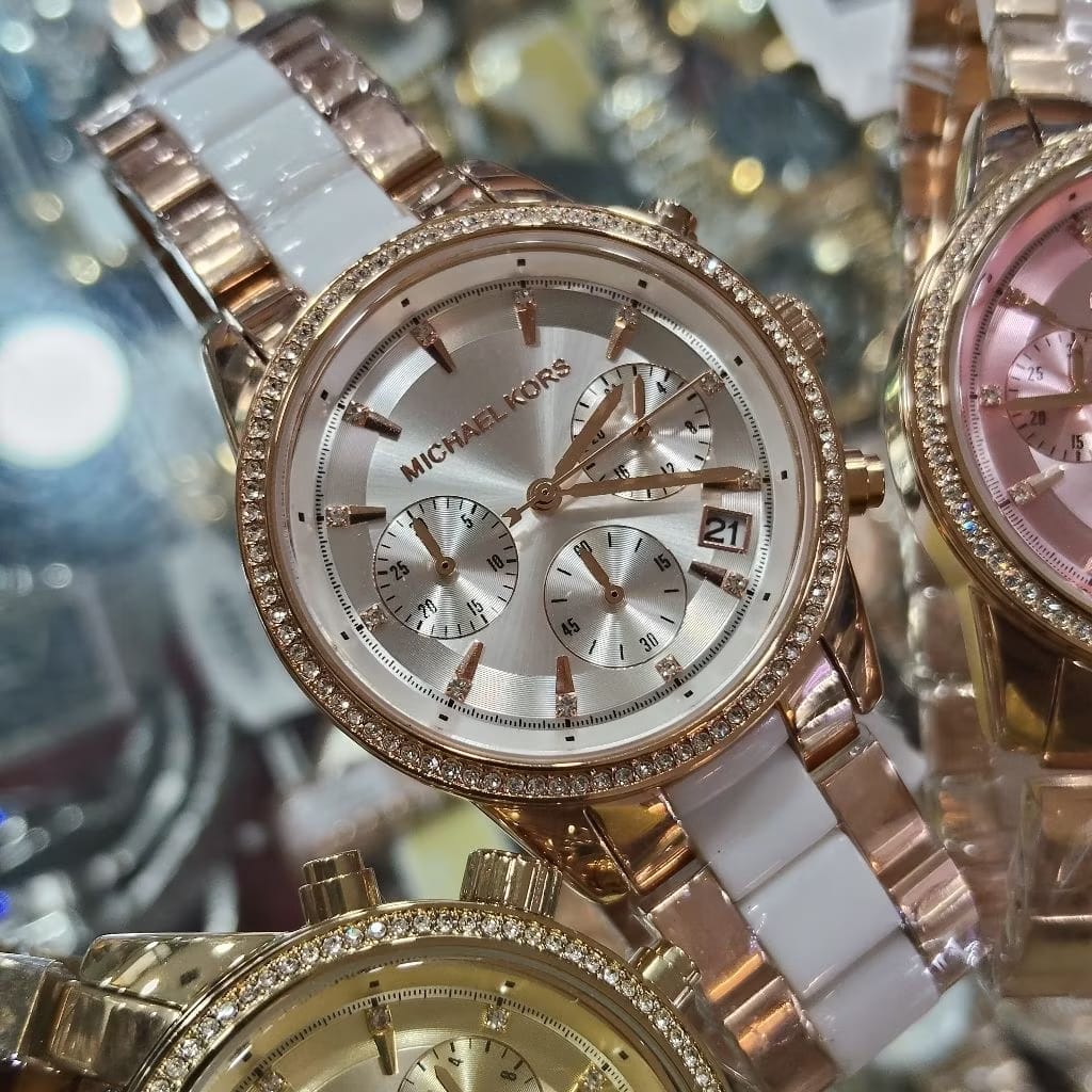JAM TANGAN WANITA MICHAEL KORS RITZ CHOROGRAPH ROSEGOLD WHITE STAINLESS STEEL ORIGINAL FREE ONGKIR - FREE BOX