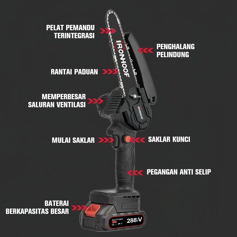 Mesin Chainsaw 6/8/12/16 Inch Cordless Chainsaw 288V Gergaji Baterai Gergaji Rantai Elektrik M
