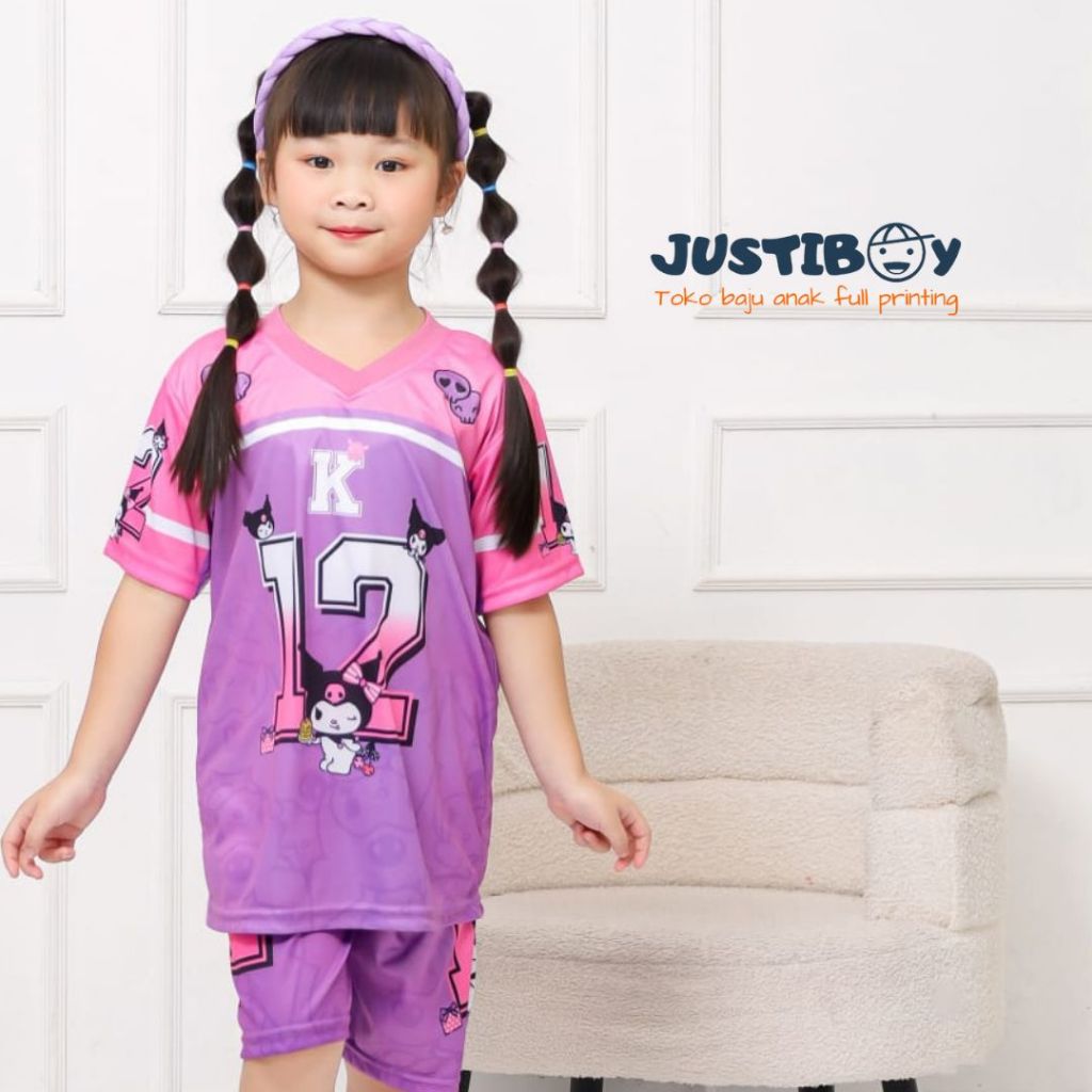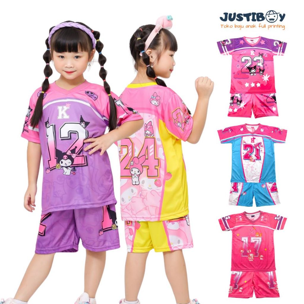 Setelan Jersey Baju Anak Basket Gambar Kuromi Full Printing Ukuran 2 - 11 Tahun