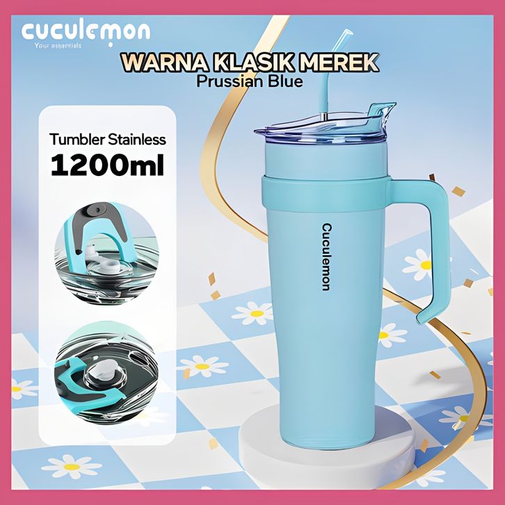 Tumbler Stainless Tahan Dingin Dan Panas Termos Kopi Botol Minum 1.2L Kapasitas Besar Cuculemon