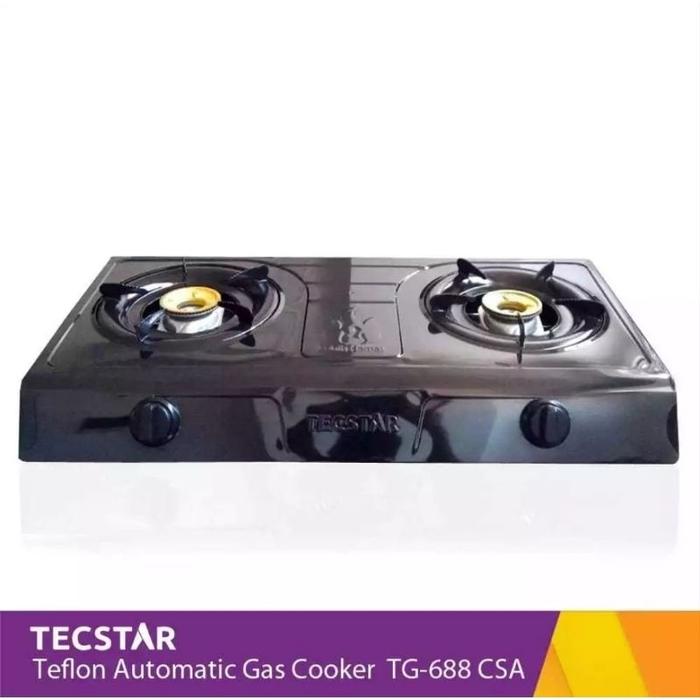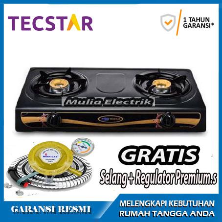 [PROMO] KOMPOR TECSTAR 2 TUNGKU TEFLON HITAM BURNER KUNINGAN BAHAN TEBAL API BIRU PROMO SELANG REGULATOR KOMPOR SAJA