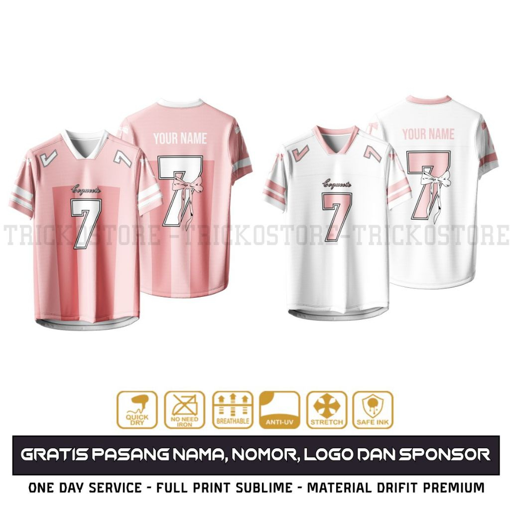 JERSEY ATASAN COQUETTE PINK AND WHITE KOREAN GRATIS PASANG NAMA DAN NOMOR PUNGGUNG BEBAS REQUEST