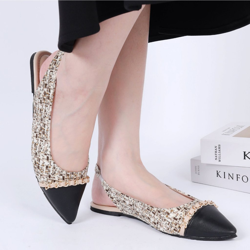 WINOD Louis Flatshoes Sepatu Flat Kerja Wanita Model Tweed Mules Flat Daily