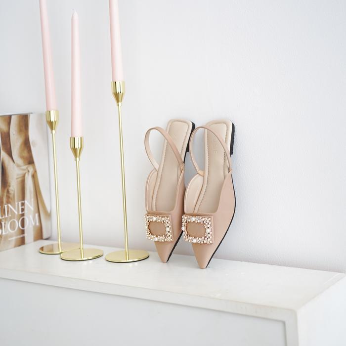 Sepatu Kulit Wanita ZODE Diamond Mules - Flat Shoes Wanita tanpa Hak - Black, Cream, Coffee