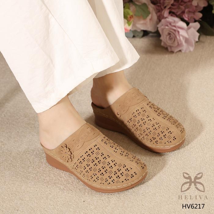Sepatu Kulit Wanita Heliva Erika Sepatu Mules Pita Wanita Sol 4cm HV6217 Shoes