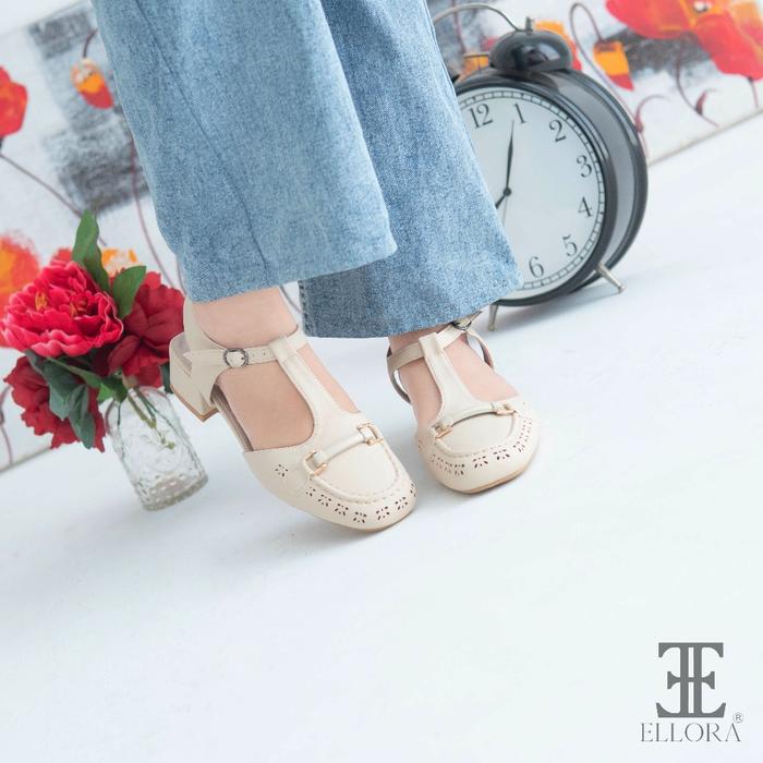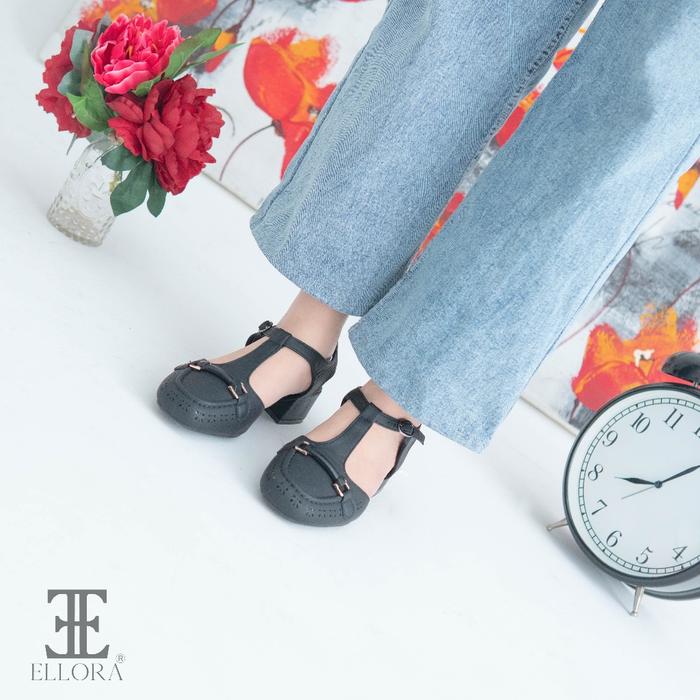 Sepatu Kulit Wanita ELLORA ER-6822 Sepatu Wanita Hak Chunky Heels Hak Tahu 4cm Import