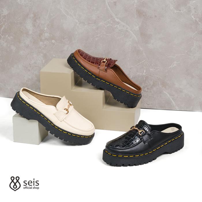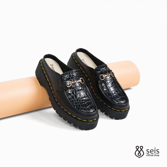 Sepatu Kulit Wanita SEIS Lexi Loafers Mules Wanita Shoes Kasual Sendal Black Perempuan