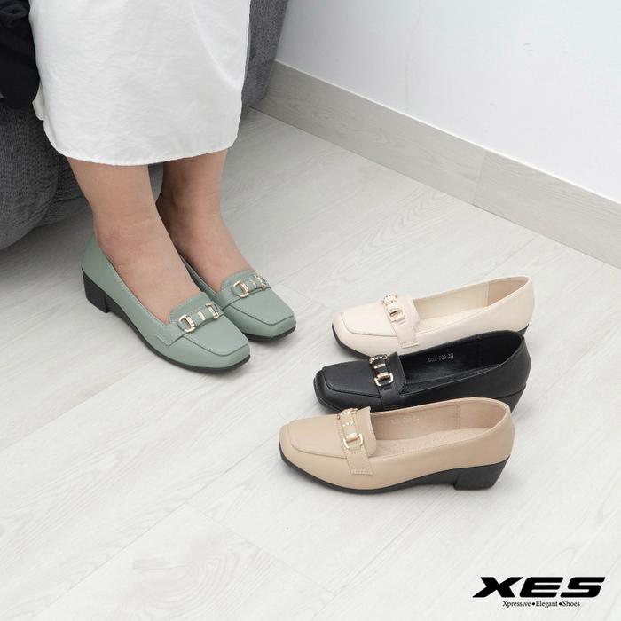 Sepatu Kulit Wanita XES BOA-709 Sepatu Pantofel Wanita Sepatu Wedges Kerja Wanita 5cm Black Heels
