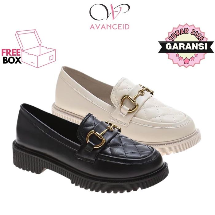 Sepatu Kulit Wanita AVANCEID 1909 Loafers Sepatu Sneakers Wanita Kerja Docmart Hitam Karet