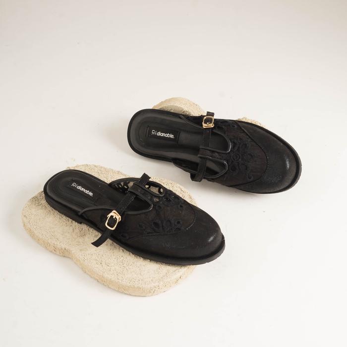 Sepatu Kulit Wanita Dianable - Loui Mules Shoes Wanita (Black - Beige) New Lace