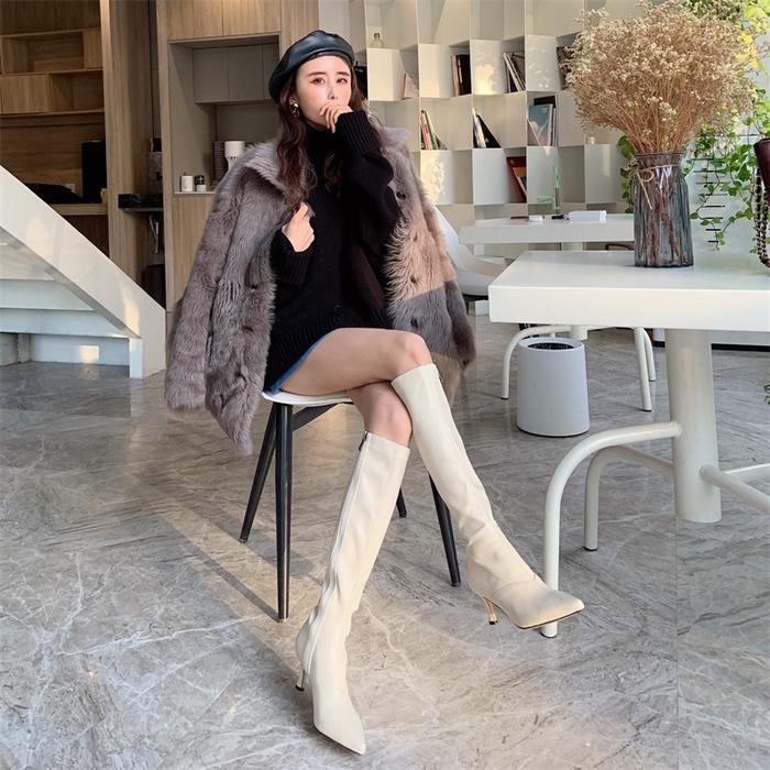 Sepatu Kulit Wanita PINKEY P126 Sepatu Long Boots Flat Kulit Hak Tinggi Black Shoes Wanita