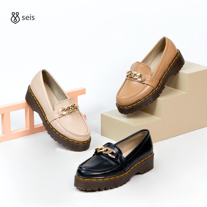 Sepatu Kulit Wanita SEIS Alfa Sepatu Docmart Wanita / Loafers Wanita Shoes Kasual Sneakers Black