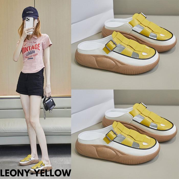 Sepatu Kulit Wanita Sneakers Wanita Sepatu Fashion Gaul Strap style Bahan Pu Leony