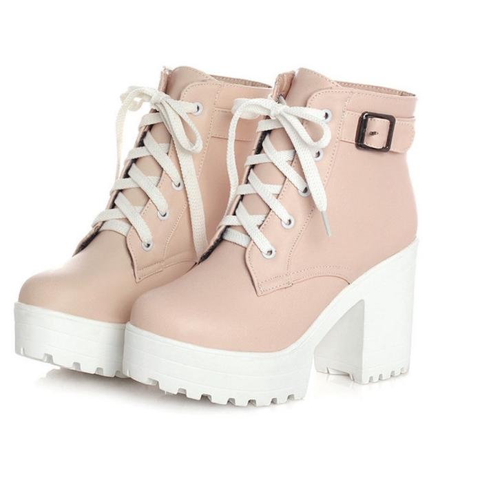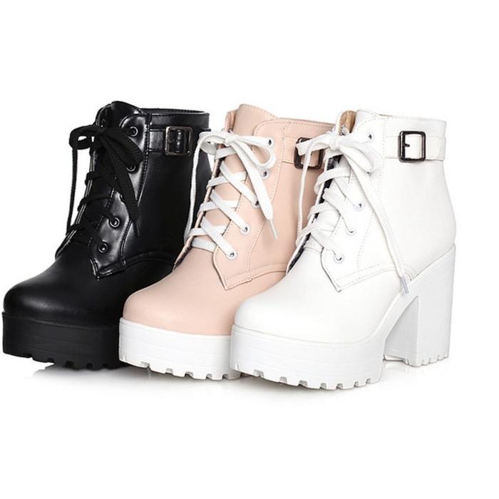 Sepatu Kulit Wanita PINKEY P097 Classic Fashion Boots For Women Style Comfortable Femme Lady Putih