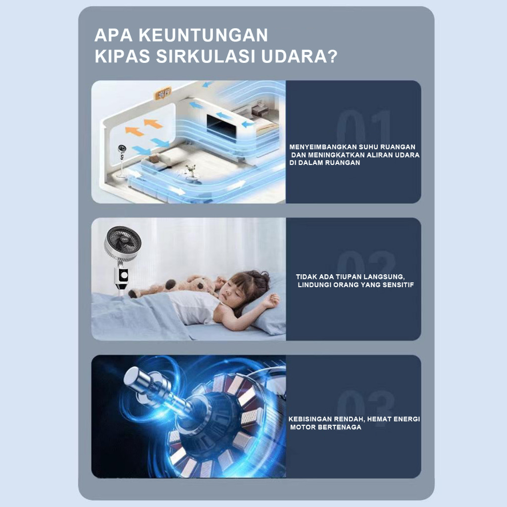 【DUAL FAN】Kipas Angin + Kipas Lantai - Auto Swing 90° & Manual Vertikal (3 Level Hemat Listrik)