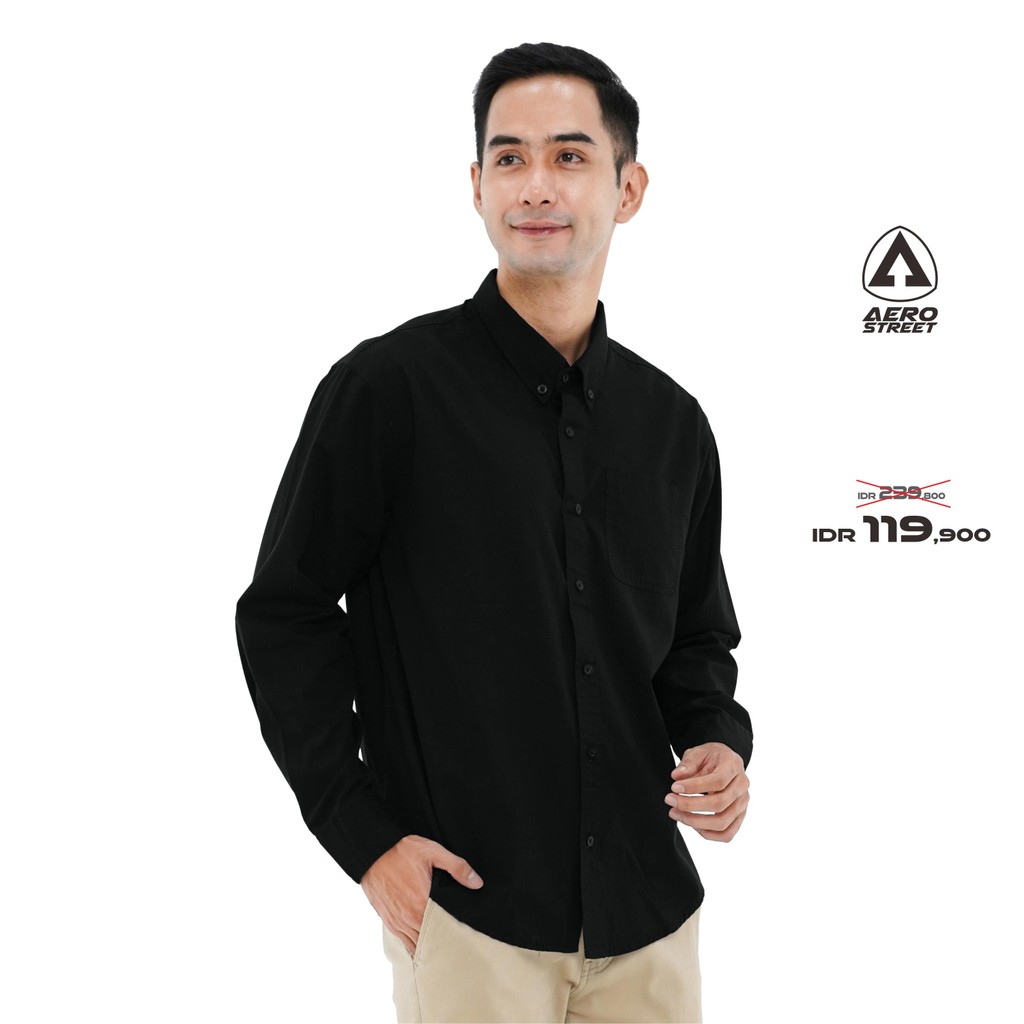 Aerostreet Kemeja Panjang Stand Collar Arion Black Man QB2AA
