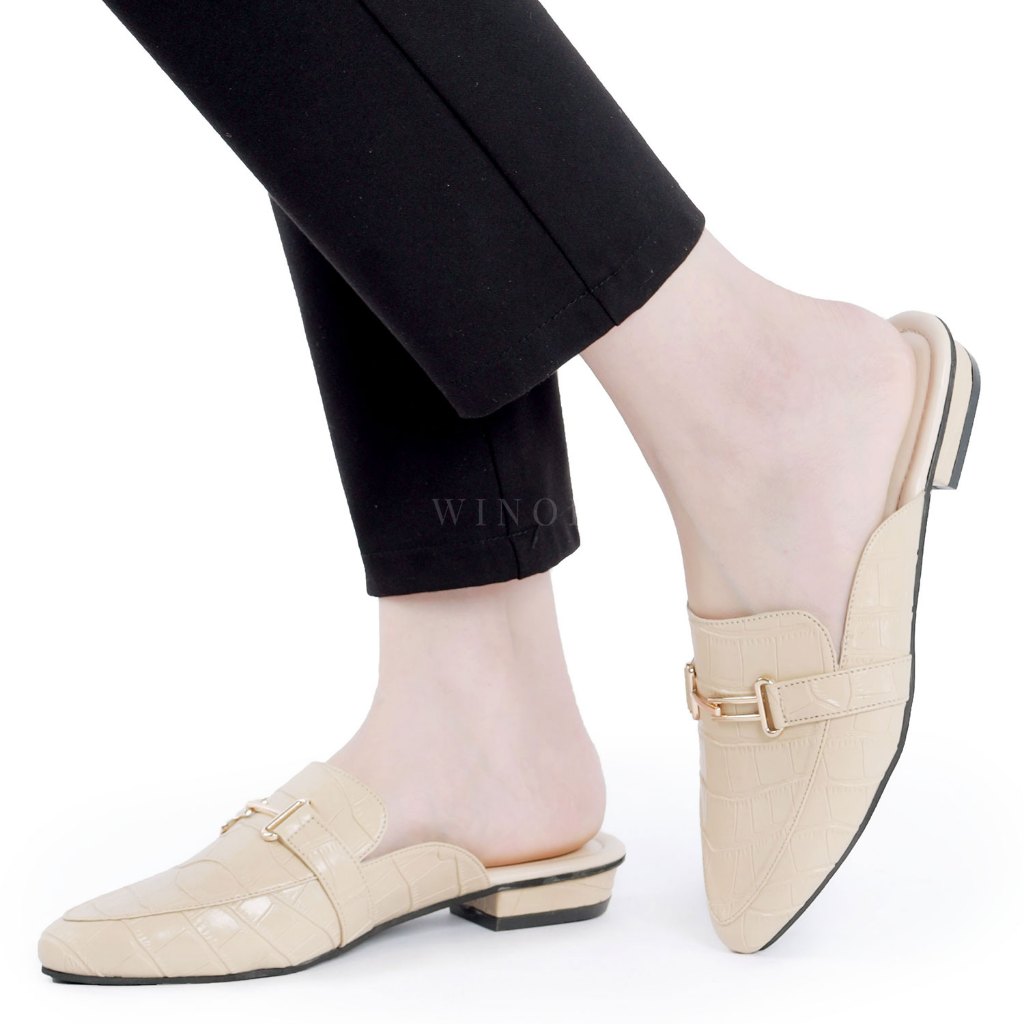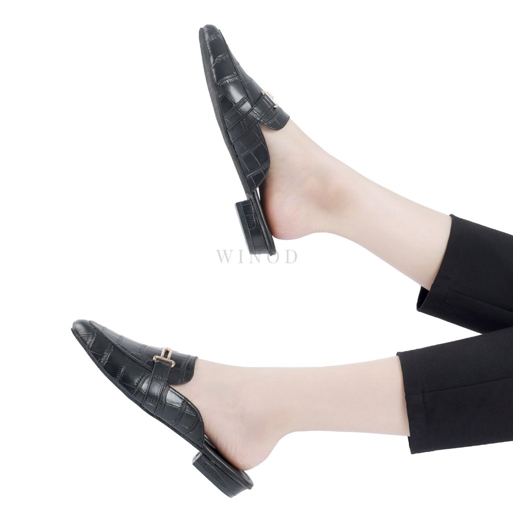 WINOD Karrie Mules Wanita Hak 2cm Flatshoes Croco Leather Casual Daily