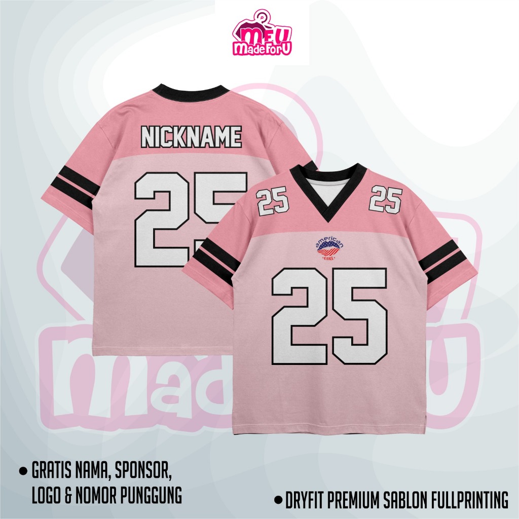 Jersey Baju Wanita/Pria AMERICAN GIRLS Edition Pink Custom Zumba, Badminton, Tennis, Futsal, Volly GRATIS NAMA DAN NOMOR PUNGGUNG