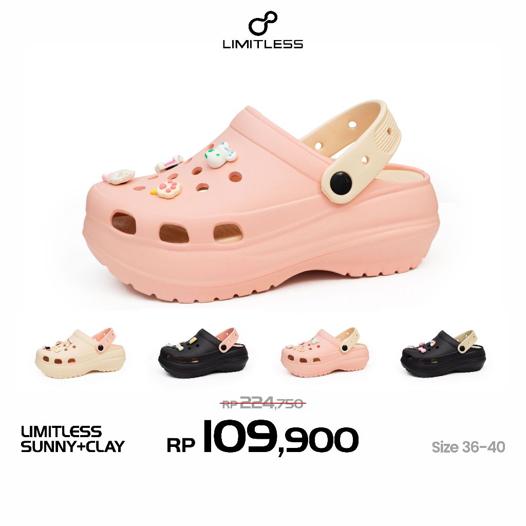 LIMITLESS [FREE CLAY] Sendal Selop Cewek Terbaru Platform Sandal Slip On Wanita SUNNY - Size 36 - 40