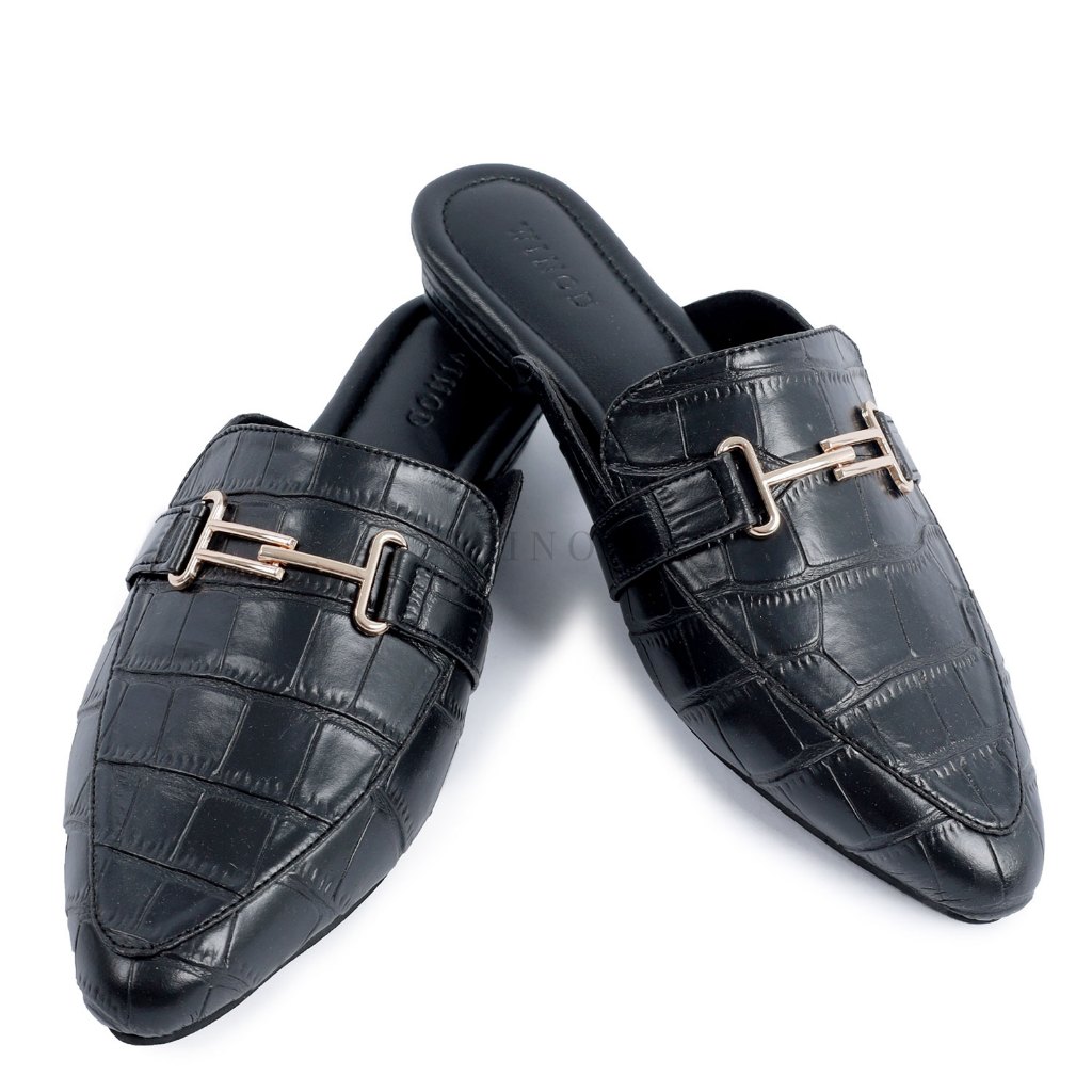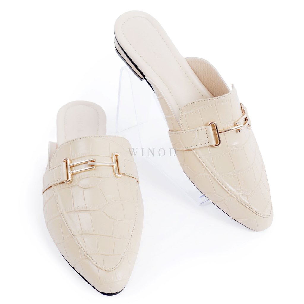WINOD Karrie Mules Wanita Hak 2cm Flatshoes Croco Leather Casual Daily