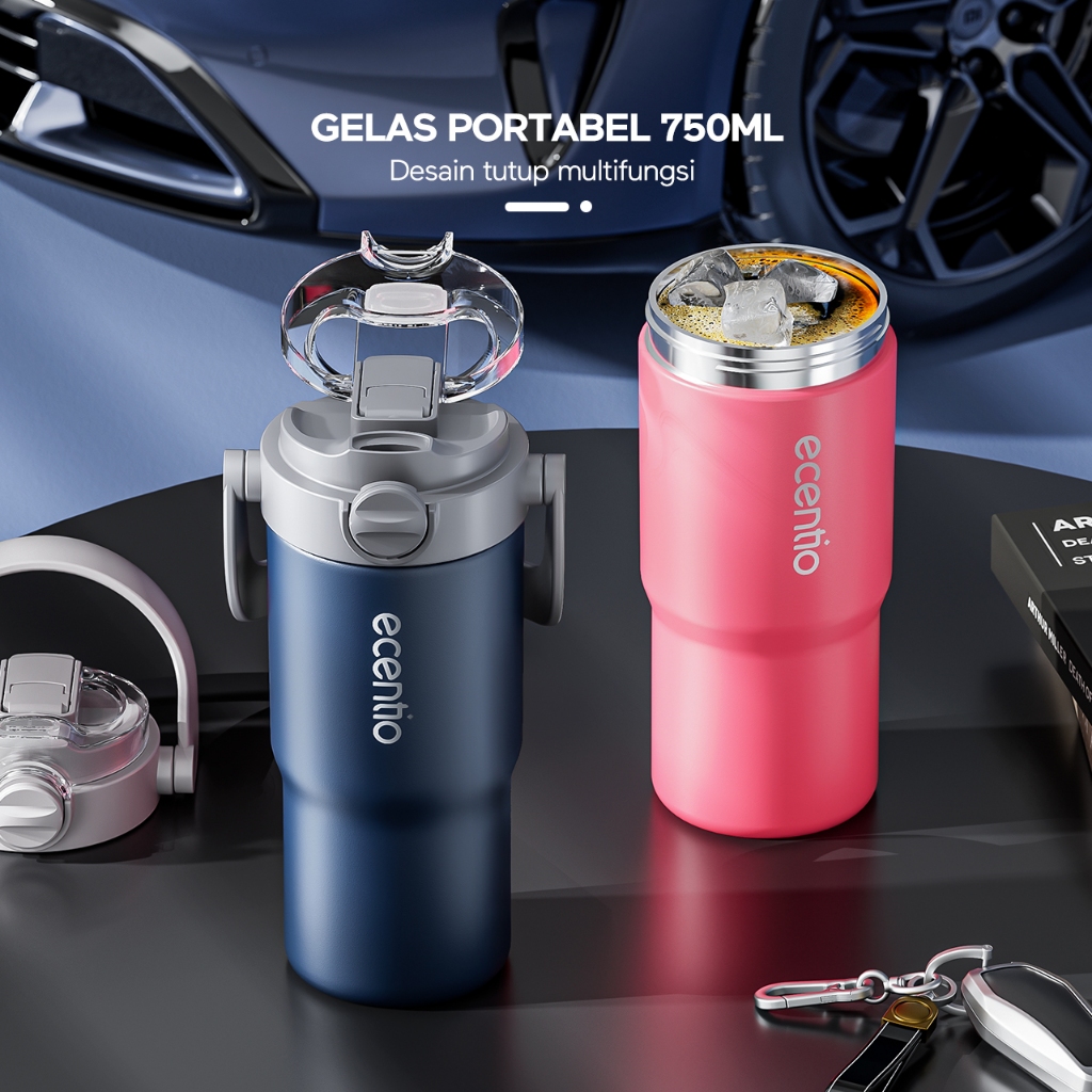 【New Version】ecentio Tumbler Portable Snless 750ml Pop l Thermos C Vacuum Insulated