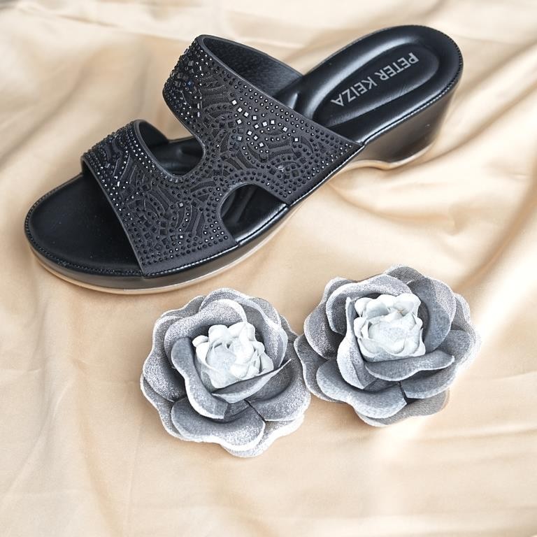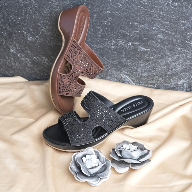 Peter Keiza Sandal Wedges Wanita Ringan dengan Payet Tinggi 5 cm XS08-03