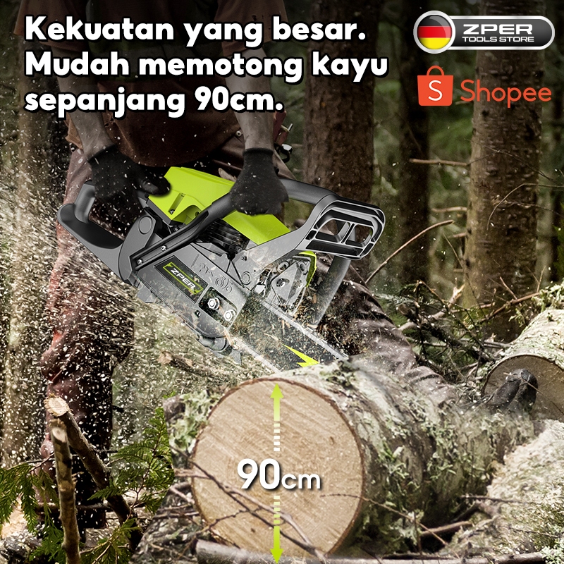 ZPER 54.6CC 20inch Chainsaw Bensin 2Tak Mesin P0T0NG Kayu Gergaji Kayu Super T4J4M Besi 2200W