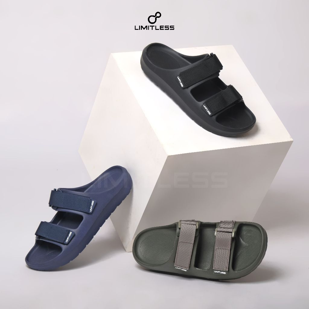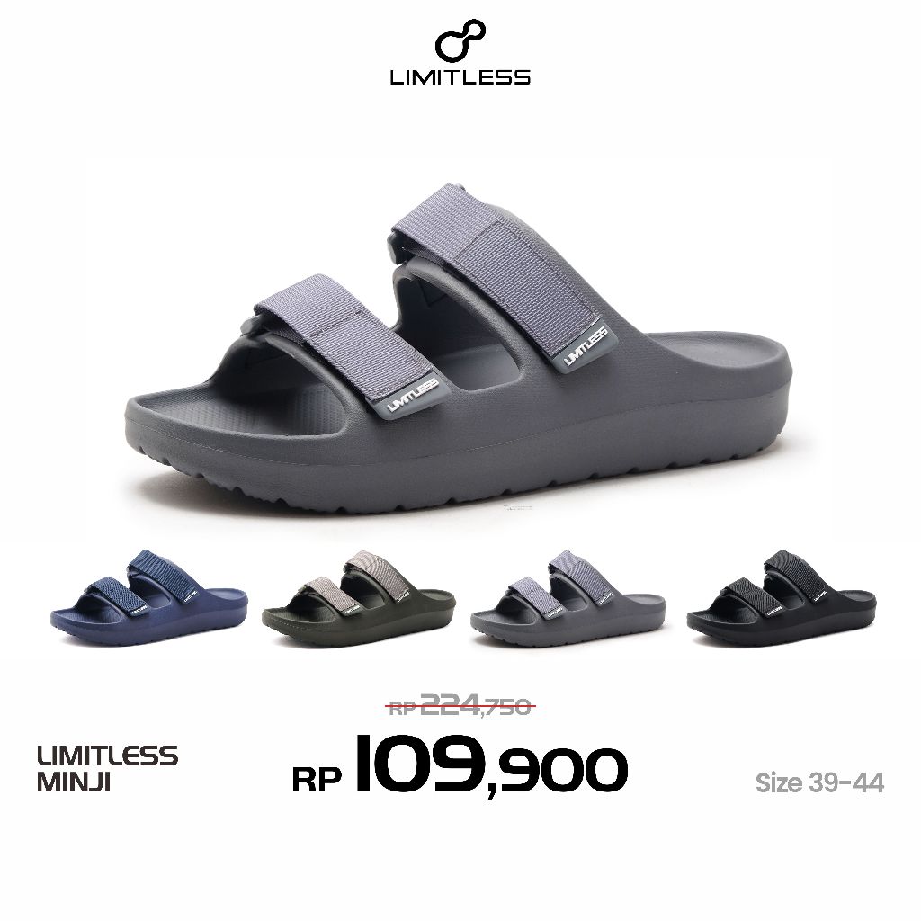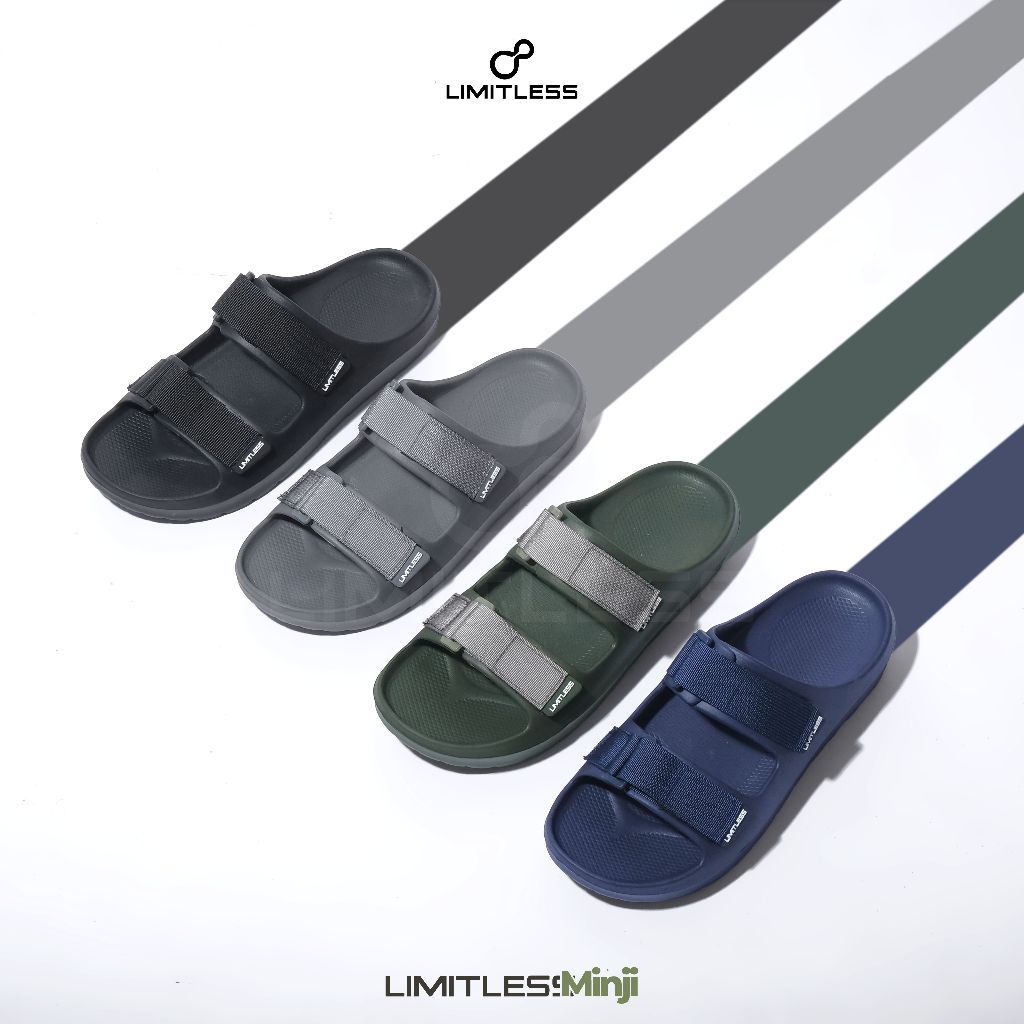 LIMITLESS Sandal Pria Terbaru 2025 Unisex MINJI Korean Style Sendal Slop Cowok Kasual Strap 2 Eva Kekinian Sandal Selop Pria Trendy - Size 35 - 44