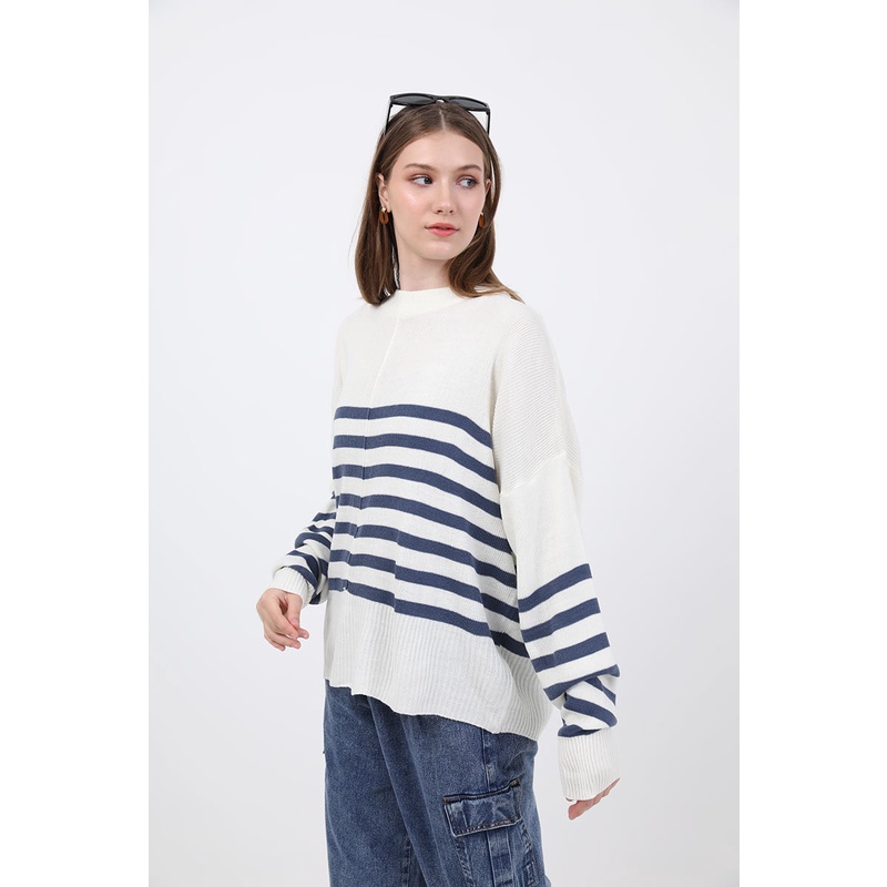 Berrybenka - Atasan Sweater Rajut Blouse Wanita Sofia Misye Stripes Sweater