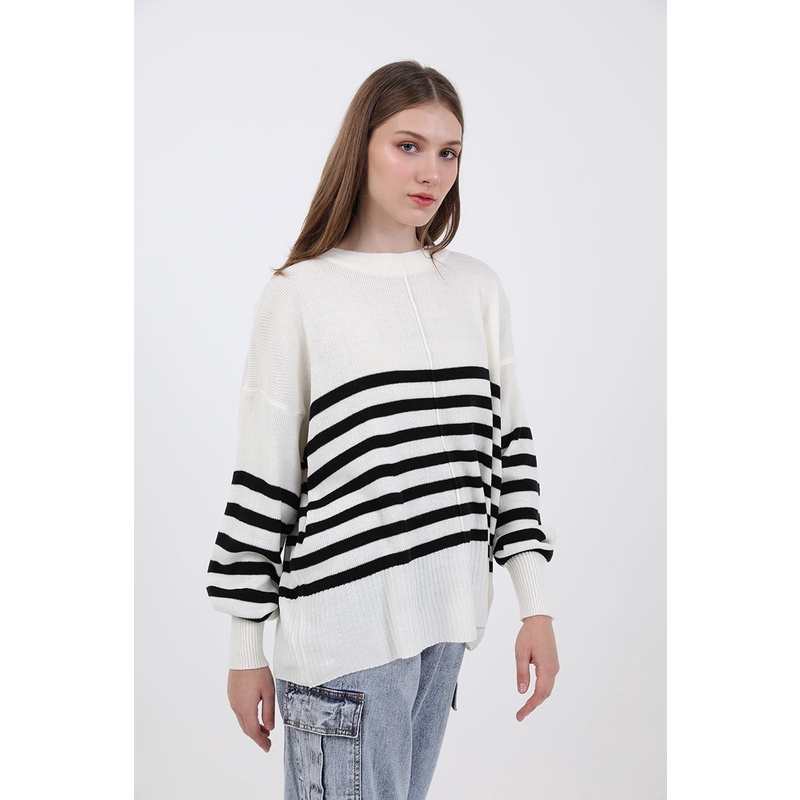 Berrybenka - Atasan Sweater Rajut Blouse Wanita Sofia Misye Stripes Sweater