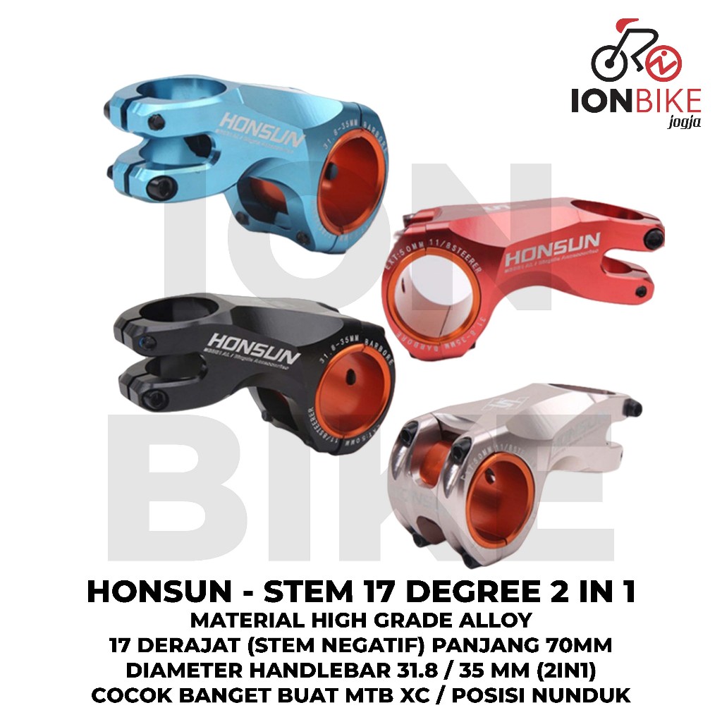Stem Honsun 17 Derajat 2 in 1 Oversize 7 cm Sepeda MTB XC 31.8 35 mm Murah Alloy Handlebar Handle Bar 70mm 70 mm