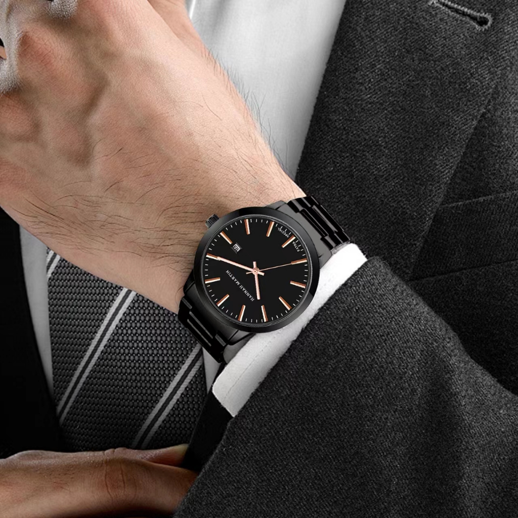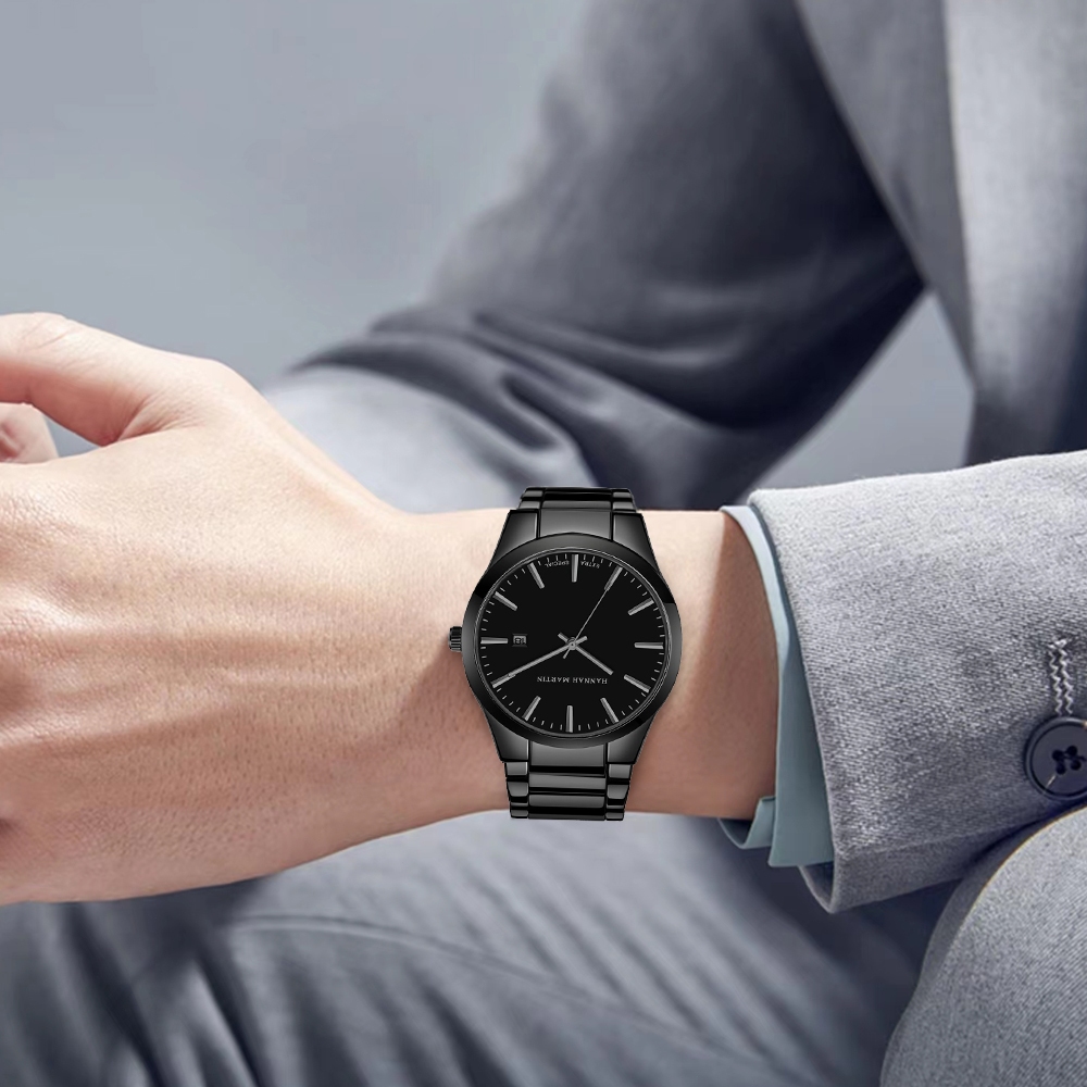 Jam Tangan Pria 100 Persen Original Business Analog Tanggal Stainless Steel 1756 HANNAH MARTIN