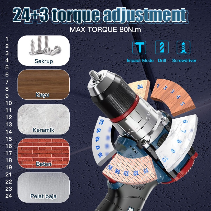 LUCID LX-50 Cordless Mesinbor 80N.M13MM 2.0A 18V Li-ion Baterai Impact Drill Brushless Pocket Rocket
