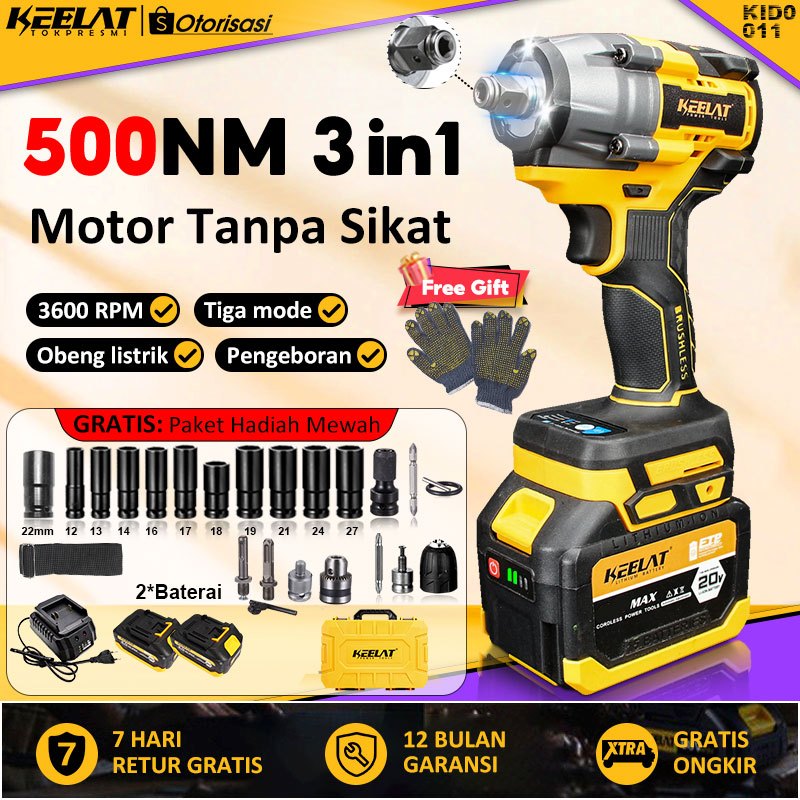 KEELAT KID011 500NM Brushless Impact Wrench Cordless Mesin Bor Impact CVT beton tembok kayu Untuk Baut Mobil