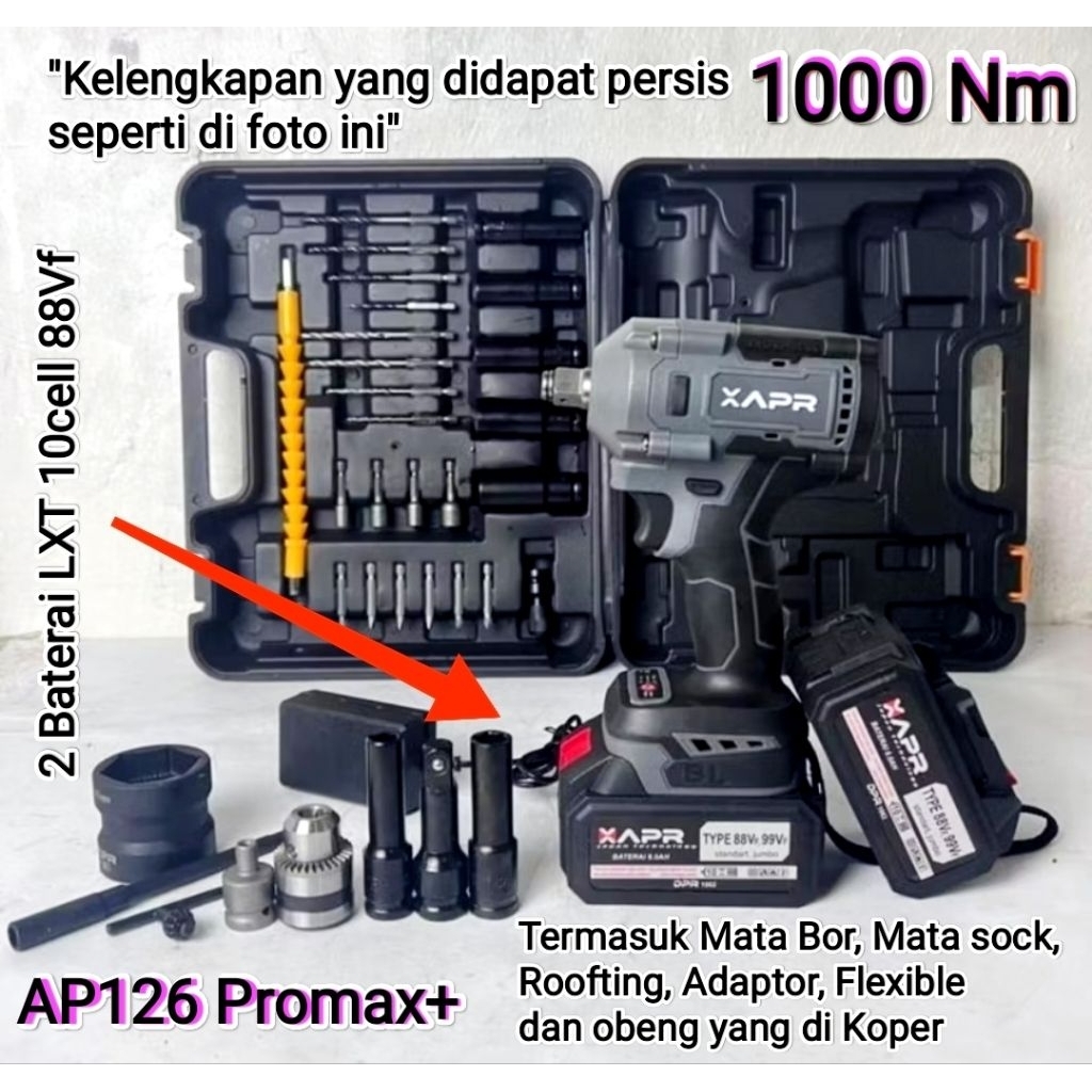 PROMO IMPACT APR 1000Nm AP126 Promax+ 1/2 inch Impact Wrench Pembuka Baut 1 Set Lengkap Garansi 5 th