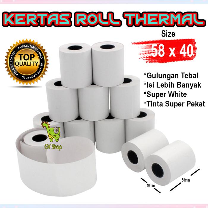 [PROMO] 58 X 40 MM KERTAS STRUCK PRINTER THERMAL TEBAL 58X40MM ISI 10 ROLL