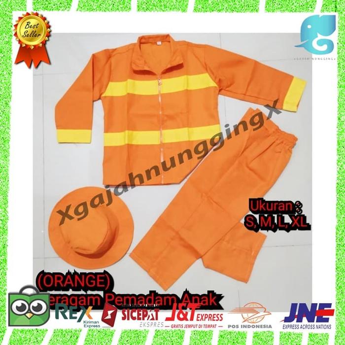 [PROMO] BAJU SERAGAM PEMADAM KEBAKARAN ANAK KOSTUM DAMKAR BERKULITAS MURAH ORANGE XS (12 TAHUN)