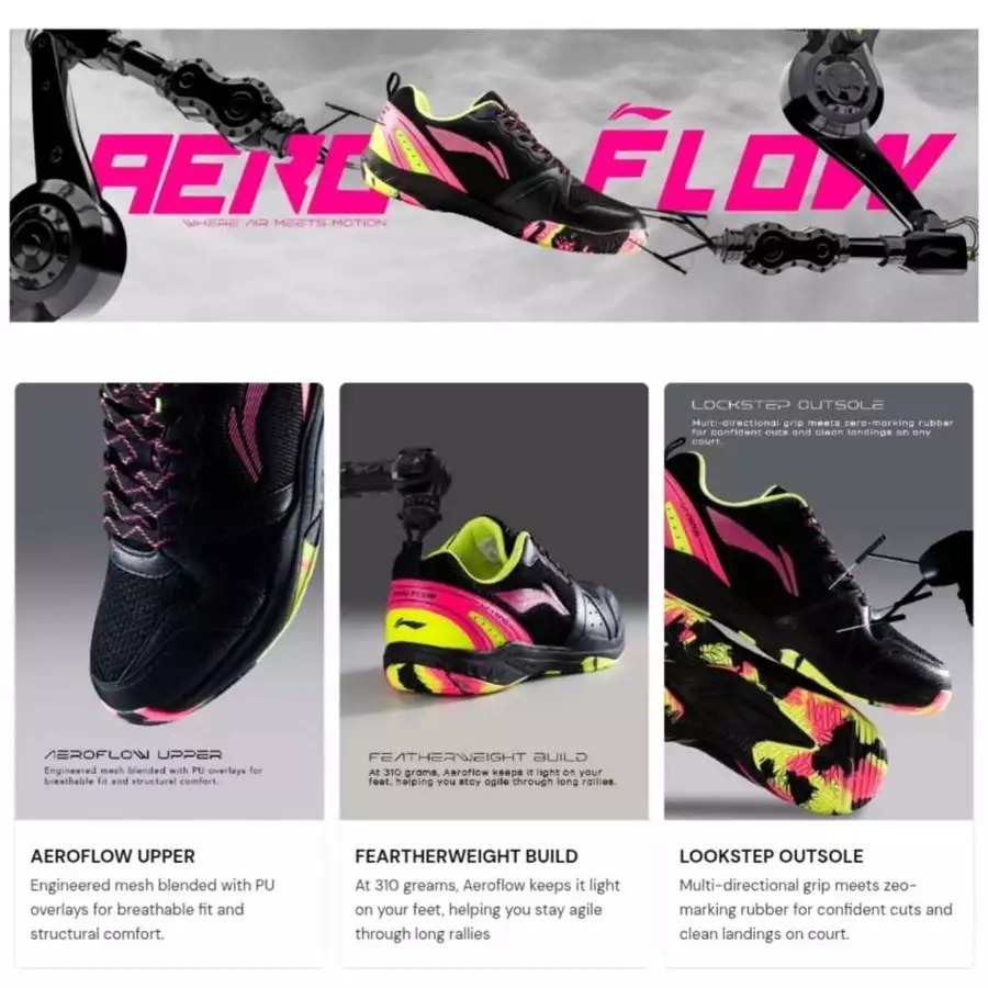 Bonus Kaos Kaki ! Li-Ning Aero Flow / Aeroflow Original AYTV075 Sepatu Badminton Bulutangkis