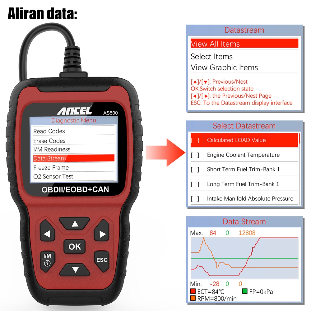 2025 ANCEL AS500 OBD2 Scanner Engine e Reader Engine Check Turn off Engine Light Full OBD2 Function Diagnostic Tool