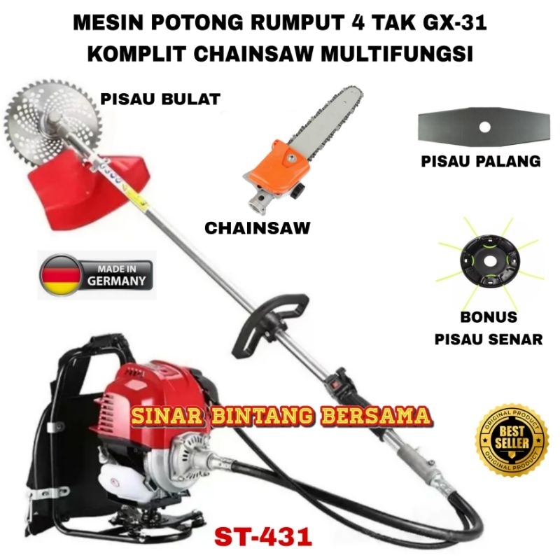 MESIN P0T0NG KAYU CHAINSAW DAN P0T0NG RUMPUT 4 TAK MODEL HONDA GX-31