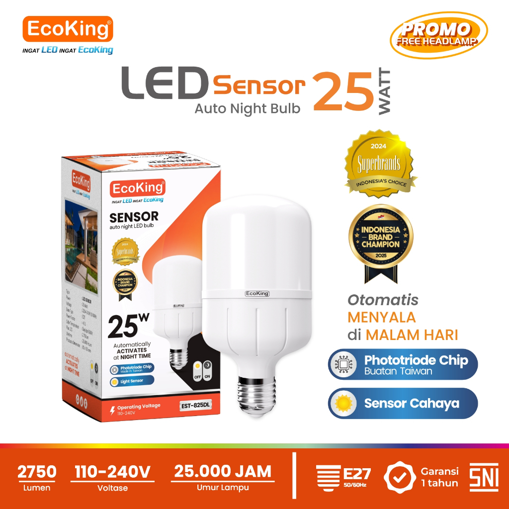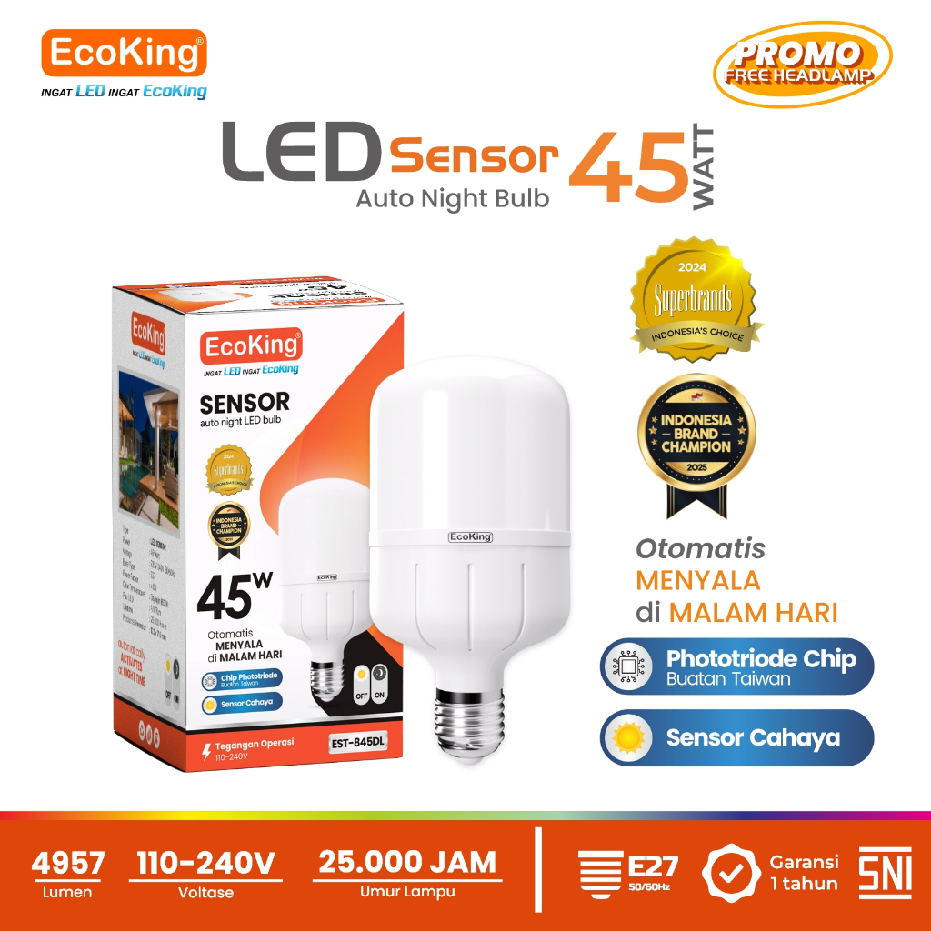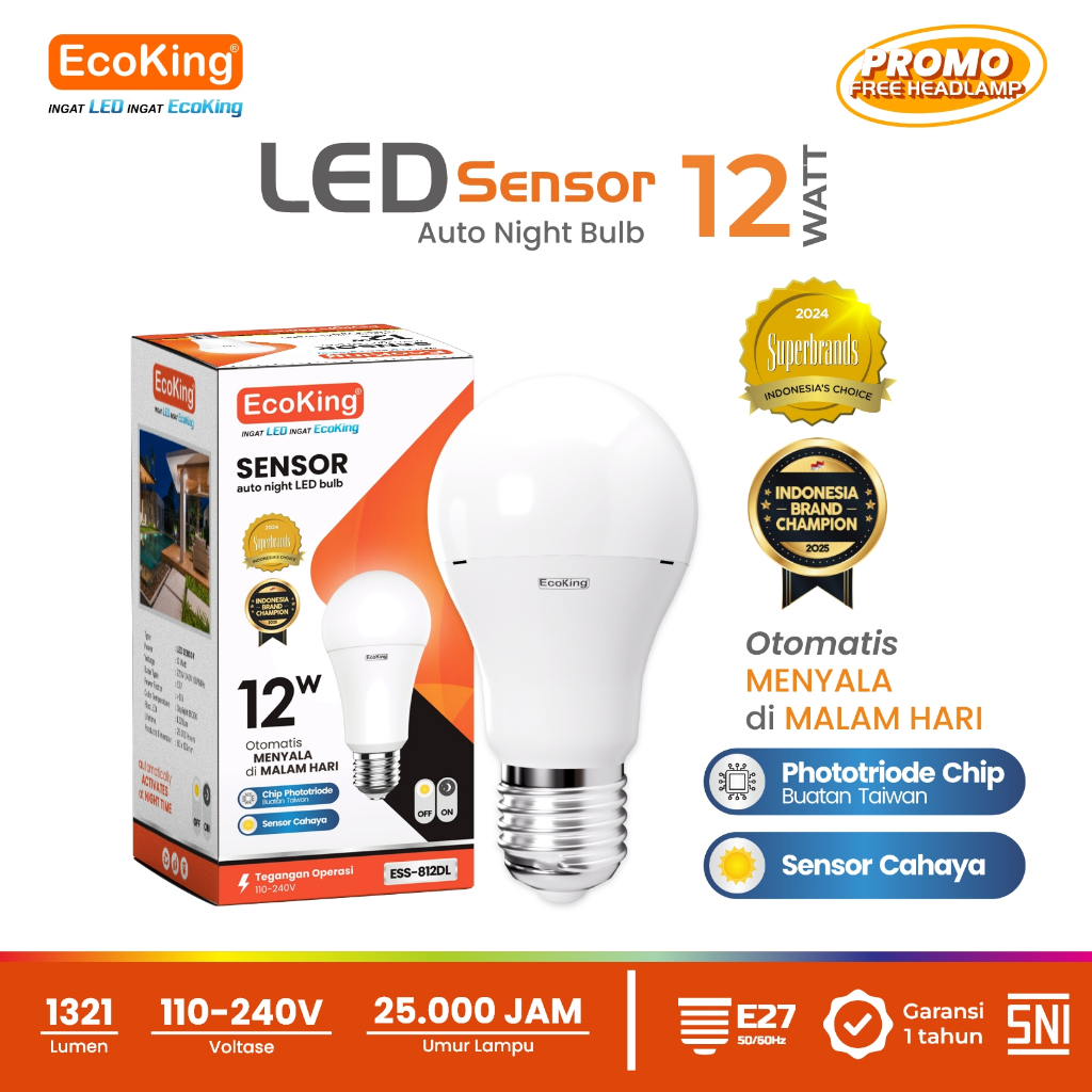 Lampu Bohlam LED Rumah Sensor Cahaya Otomatis 10W 12W 18W EcoKing