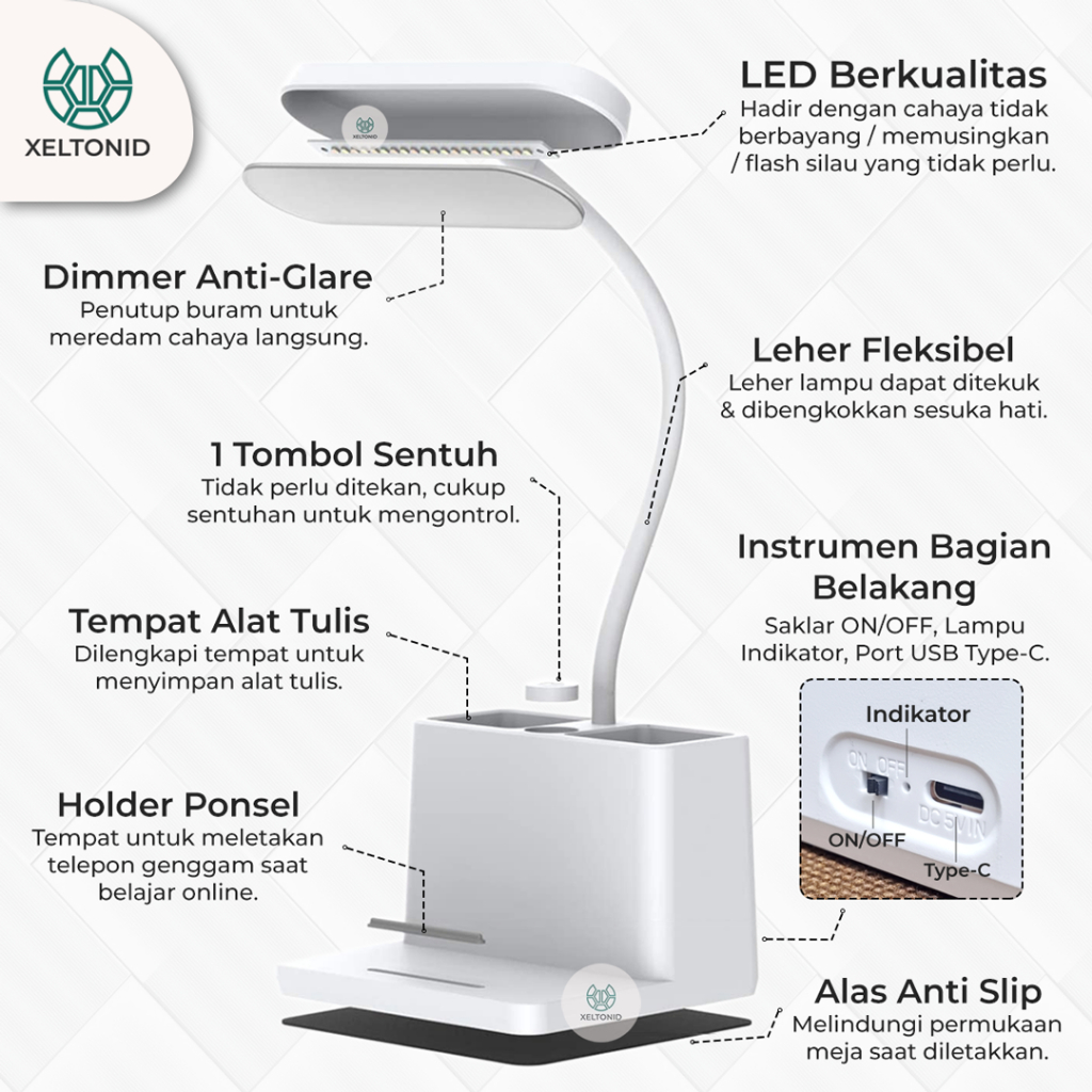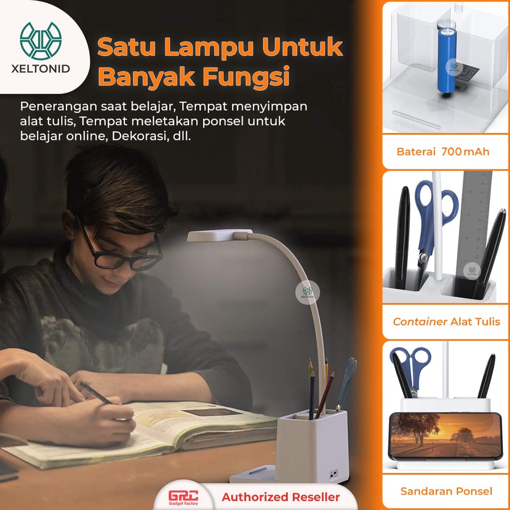 Lampu Meja Belajar Led Portable Baca Tempat Pensil Flexible
