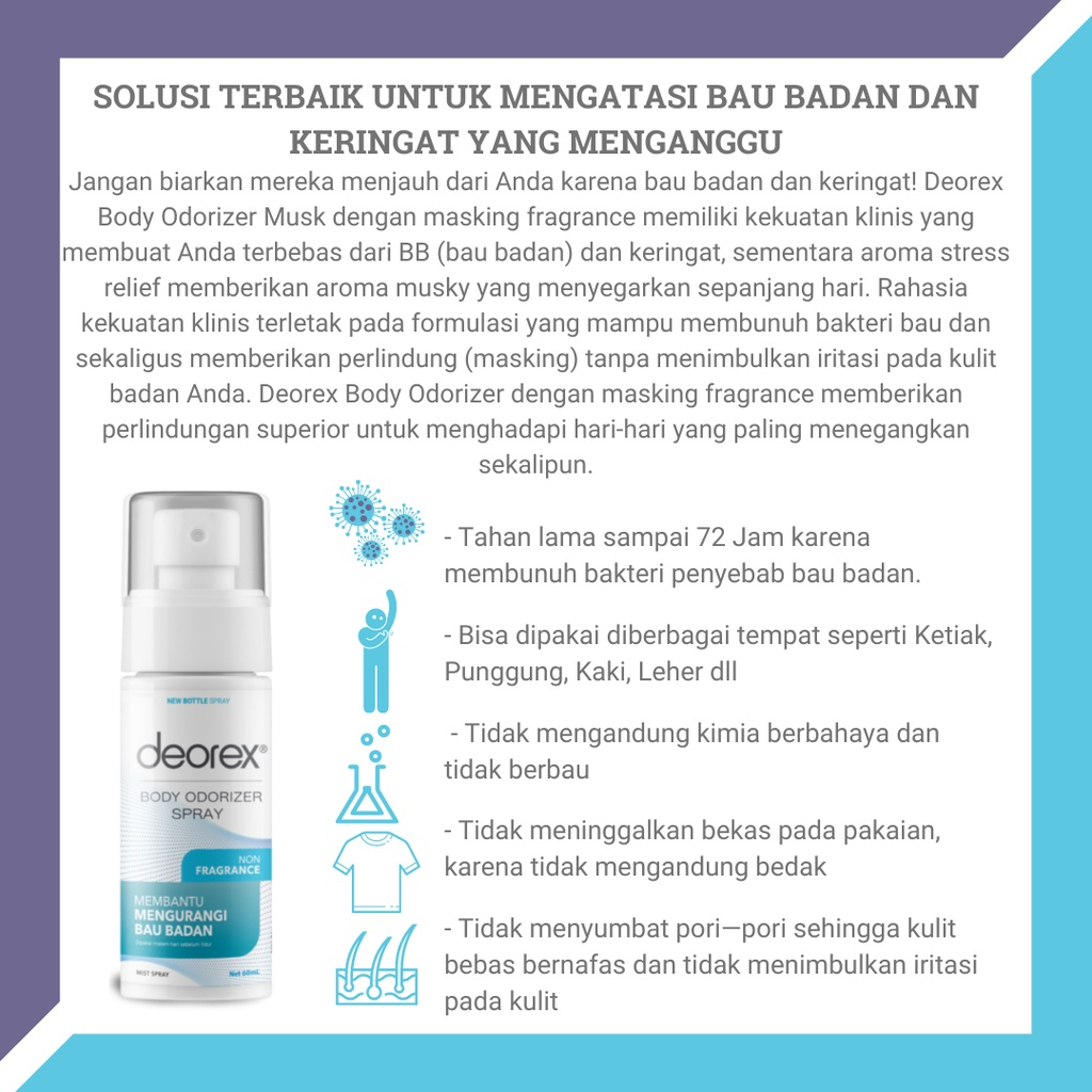 Spray Deorex Body Odorizer Non Fragrance Biru 60ml Penghilang Bau Ketiak Efektif