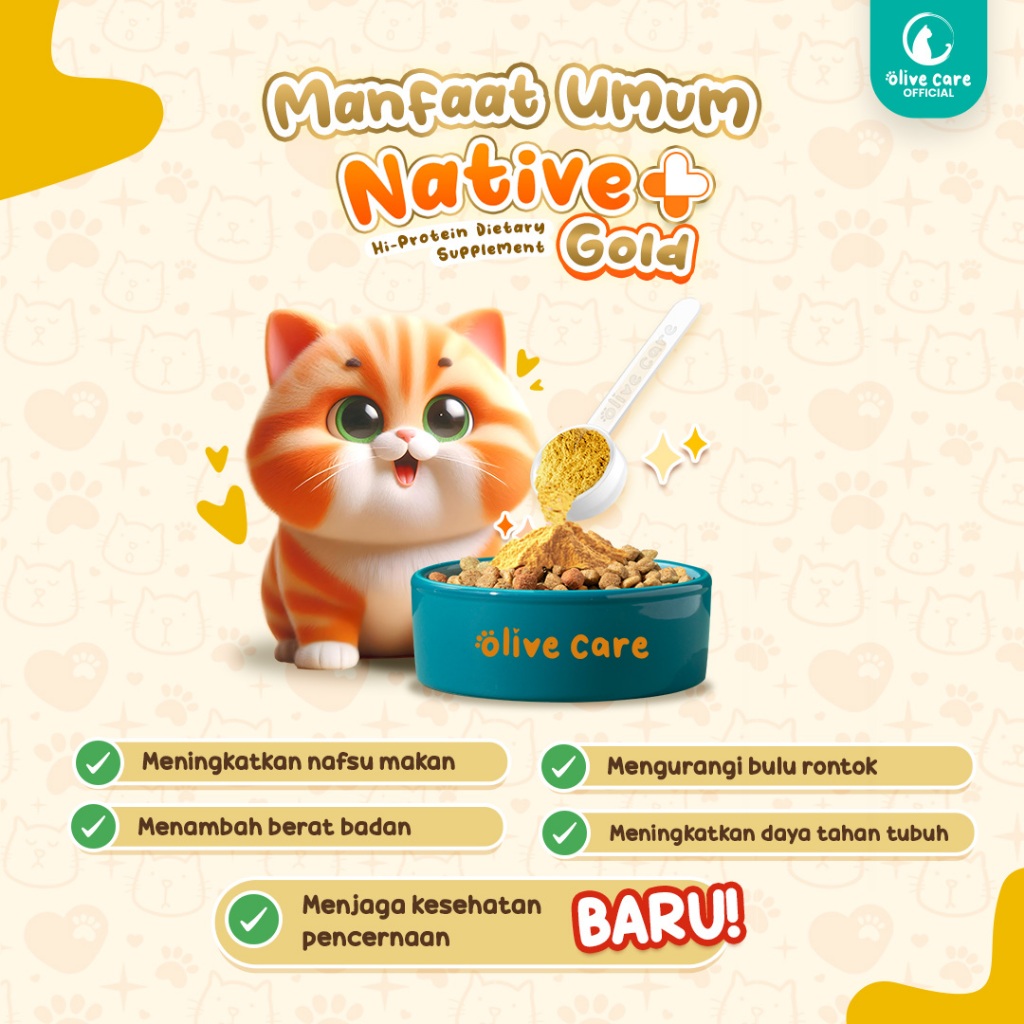 Vitamin Kucing NATIVE+ GOLD Protein Tinggi 110gr GOLDEN POWDER untuk Penambah Nafsu Makan, Berat Badan