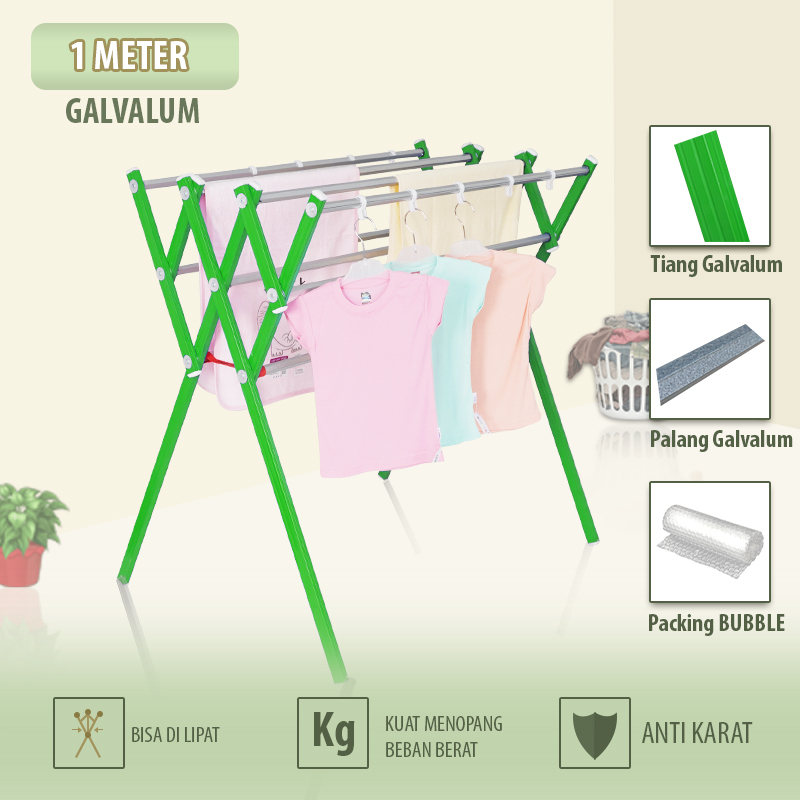 Jemuran Baju Lipat Bahan Galvalum 1 Meter Jemuran Baju 9 Palang Anti Karat Kokoh