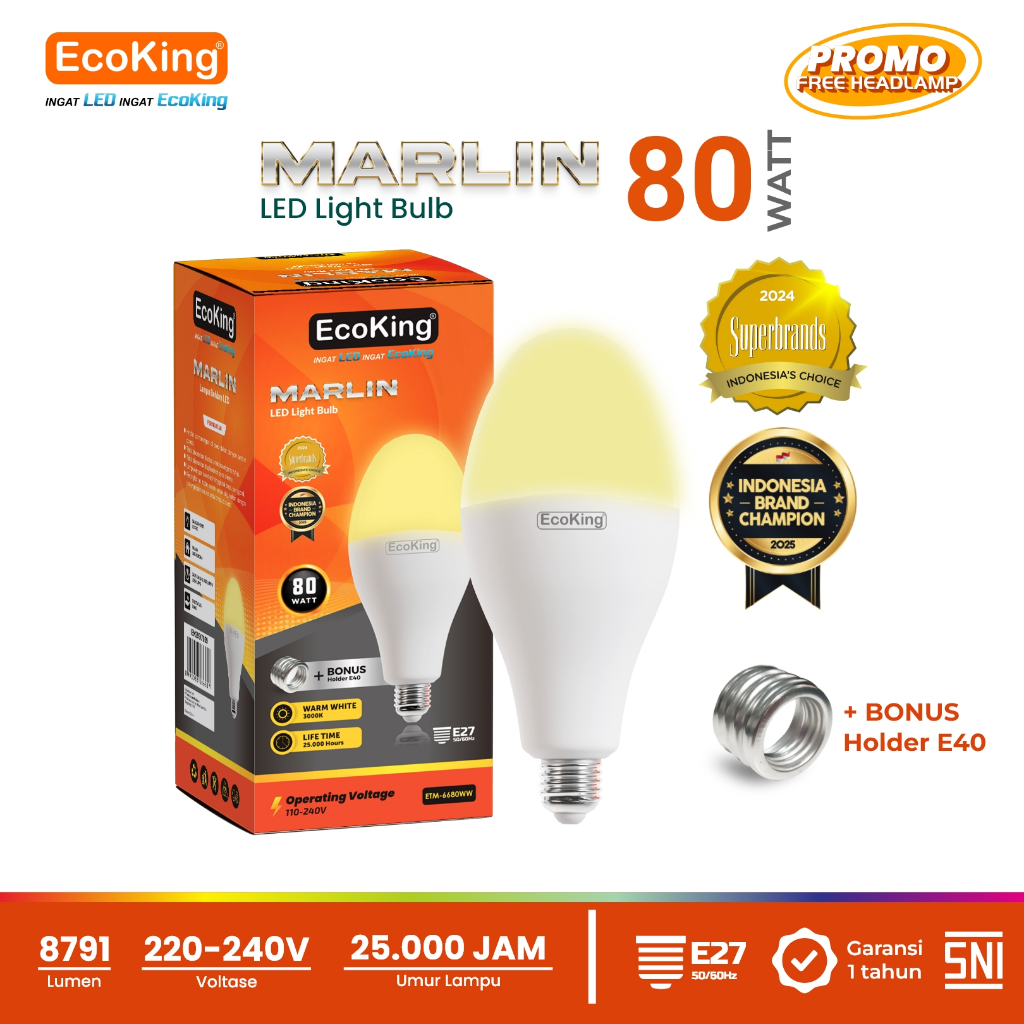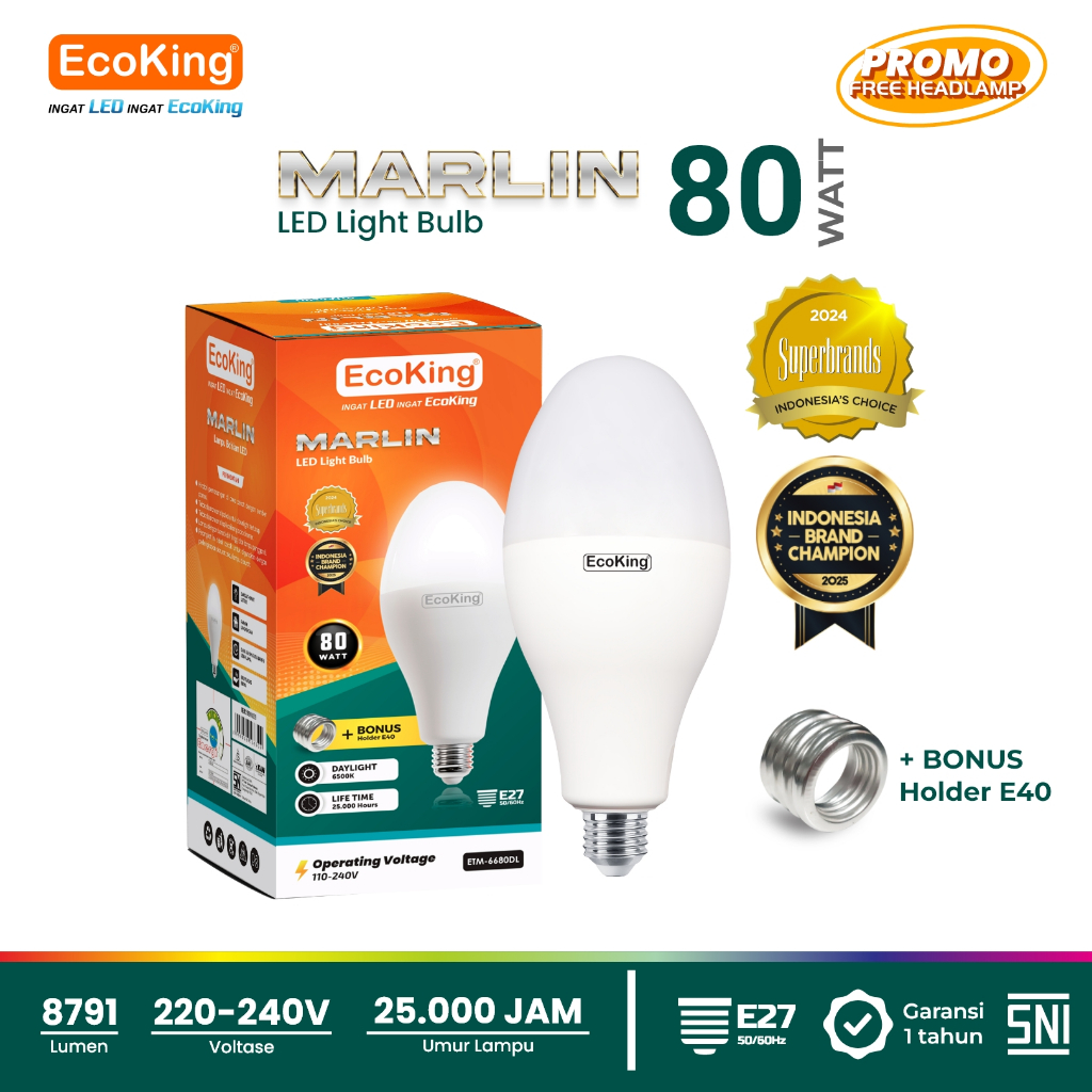 Lampu Bohlam LED Marlin 40W 50W 80W 100W EcoKing
