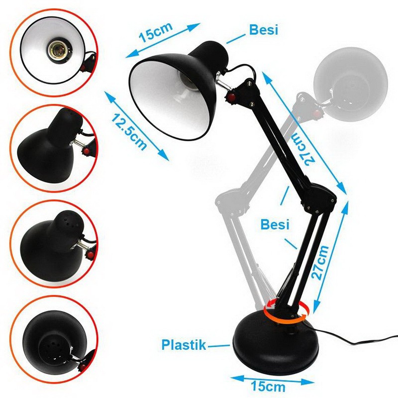 Lampu Meja Belajar Arsitek Hitam JM 800